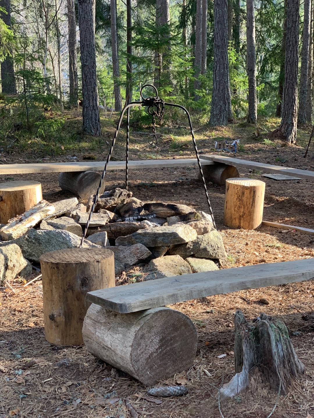 Uteliv og friluftsliv🌲 Her er det mye rollelek, kreativitet og fantasi. Vi får brukt kroppen vår med blant annet balanse og fjellklatring. Kongler blir til fine dyr og pinner plir til stokker og sverd. Vi spiser ofte varmmat rundt bålet. Plassen ligger nært inntil barnehagen, så hit går vi ofte.