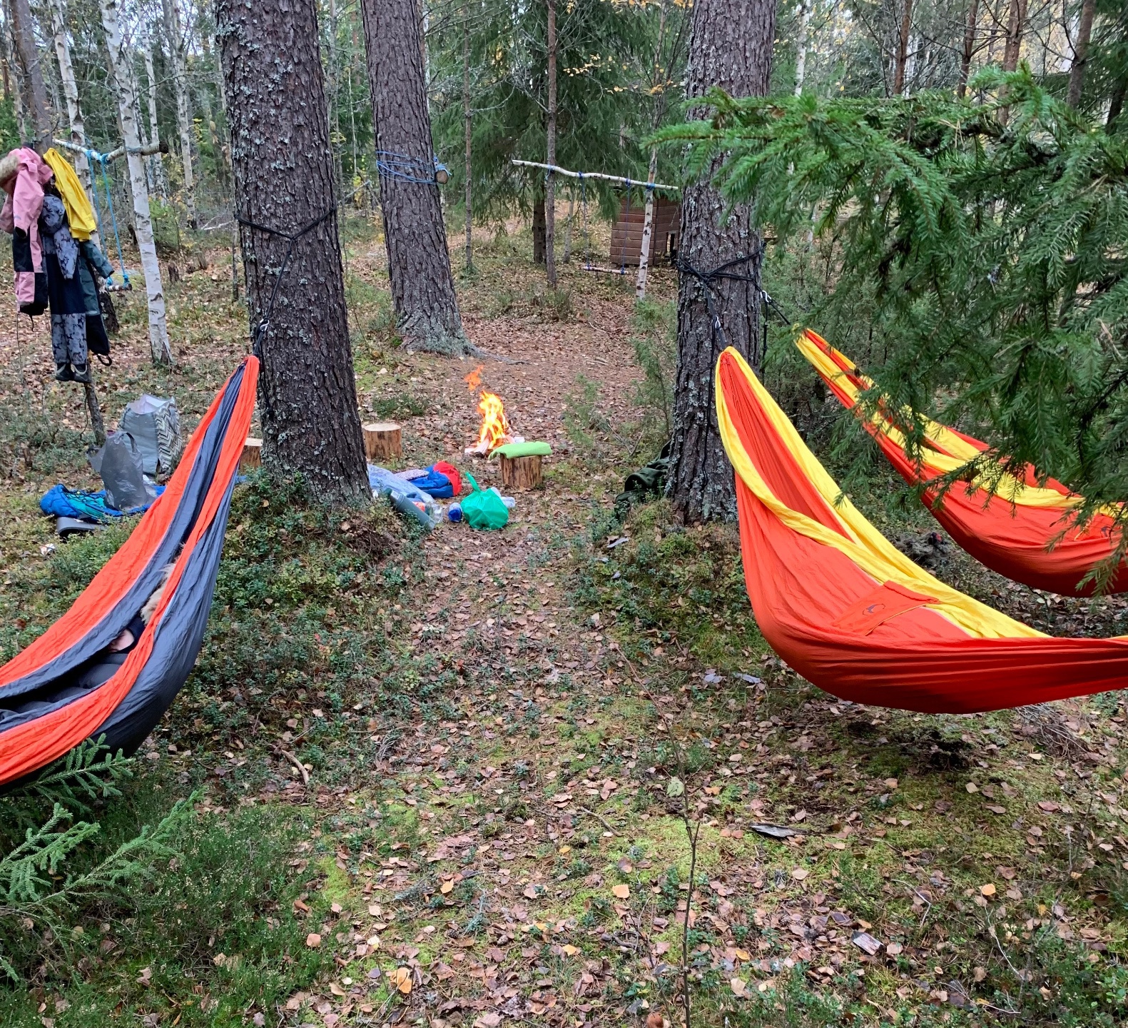 "Med skogen som arena" Vi er veldig glade i å være ute, og vi vet at skogen er med på å fremme god helse. Vi nyter godt av den! Her fremmes blandt annet vennskap, samspill, kreativitet, mestring og selvfølelse. Vi lærer oss å bli glade i, og for naturen og vi lærer oss ferdigheter som er gode å ha i skogen. Hengekøyer kan også være pakket med om vi trenger en hvil i ny og ne☺️